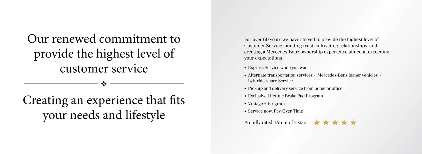 No one knows your vehicle better than we do. Our expertly trained technicians use Genuine Mercedes-Benz Parts and help make life less complicated with service that's both professional and convenient.